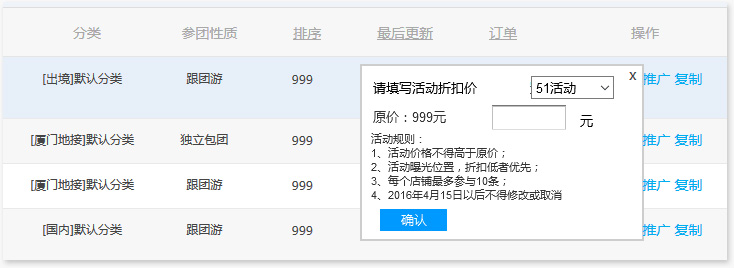 欣欣旅游將在2016年4月第二周開始,以第三周和第四周為主進行【51放價去約惠】的促銷活動,作為“五一”期間國內路線的產品促銷沖量方案……
