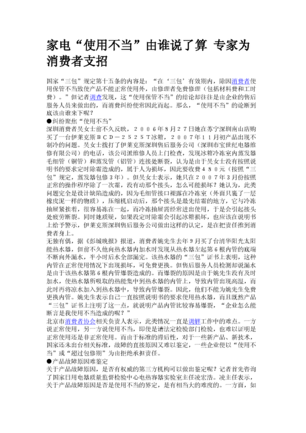 家電“使用不當”由誰說了算 專家為消費者支招(24.28KB)