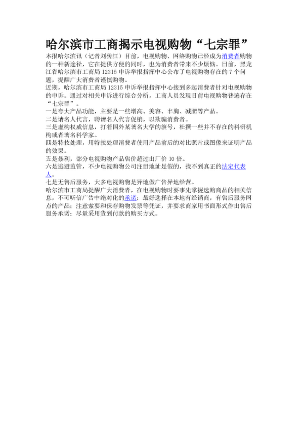 哈爾濱市工商揭示電視購物“七宗罪”(18.60KB)