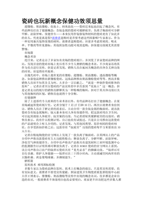瓷磚也玩新概念保健功效須思量(25.73KB)