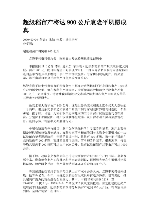 超級稻畝產(chǎn)將達900公斤袁隆平夙愿成真(4.39KB)
