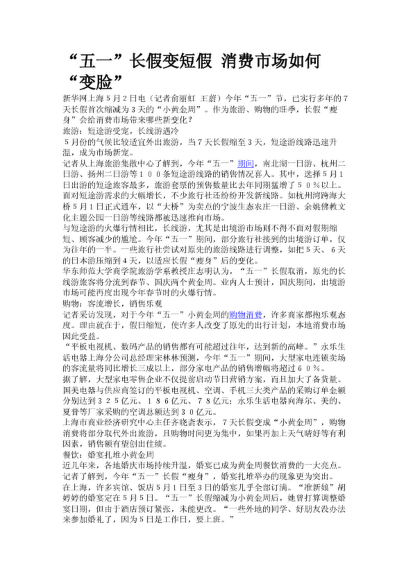 “五一”長假變短假 消費市場如何“變臉”(21.97KB)