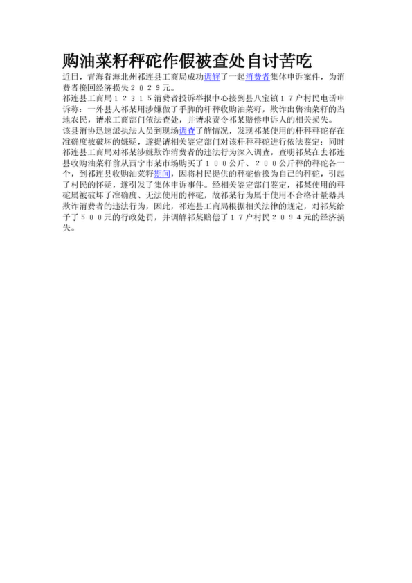 購油菜籽秤砣作假被查處自討苦吃(17.55KB)