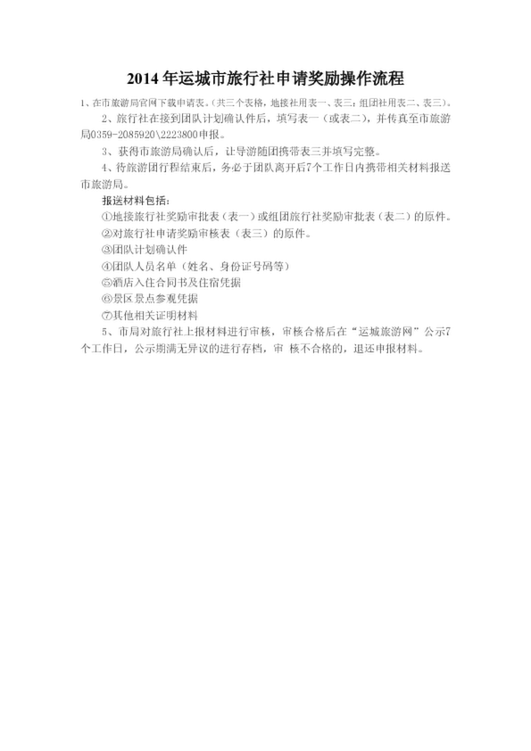 2014年運(yùn)城市旅行社申請(qǐng)獎(jiǎng)勵(lì)操作流程