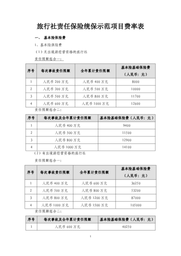 旅行社責(zé)任保險統(tǒng)保示范項(xiàng)目費(fèi)率表下載