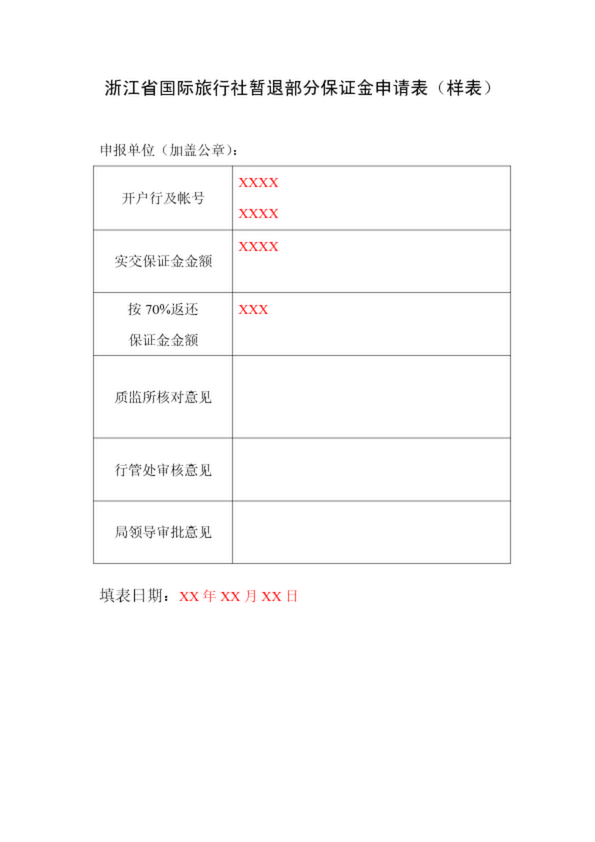 浙江省旅行社暫退部分保證金申請(qǐng)表(樣表)
