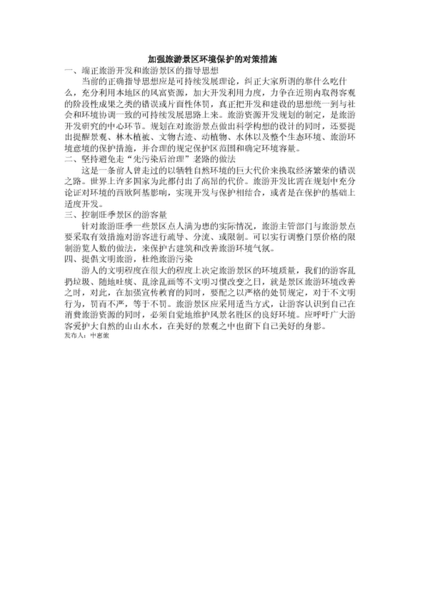 加強(qiáng)旅游景區(qū)環(huán)境保護(hù)的對(duì)策措施