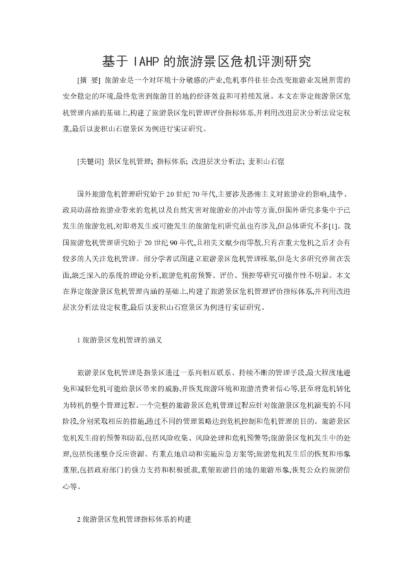 基于IAHP的旅游景區(qū)危機(jī)評(píng)測(cè)研究