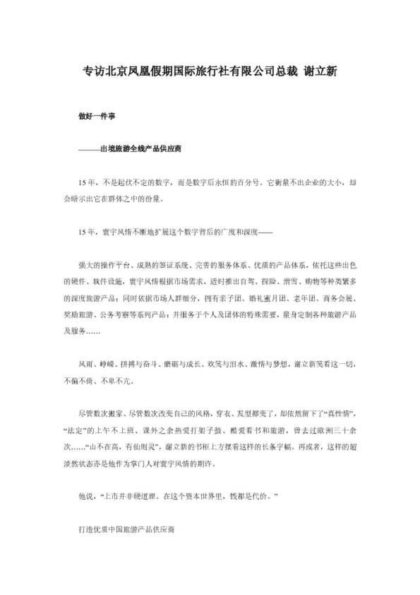 專訪北京鳳凰假期國際旅行社有限公司總裁 謝立新(19.50KB)