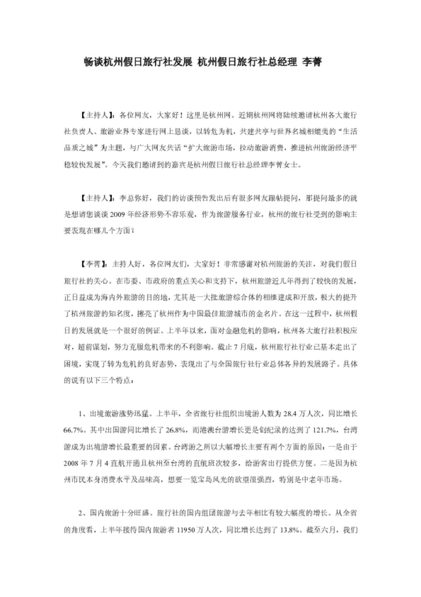 暢談杭州假日旅行社發(fā)展 杭州假日旅行社總經(jīng)理 李菁(29.50KB)
