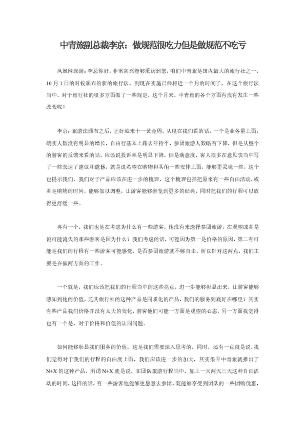 中青旅副總裁李京:做規范很吃力但是做規范不吃虧(23.50KB)