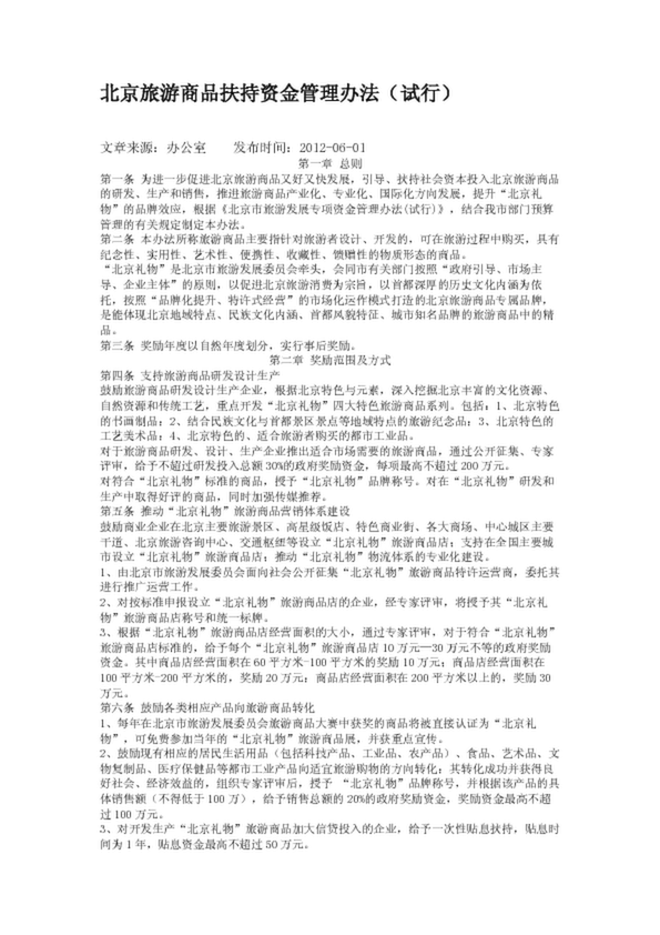 北京旅游商品扶持資金管理辦法(試行)(7.85KB)