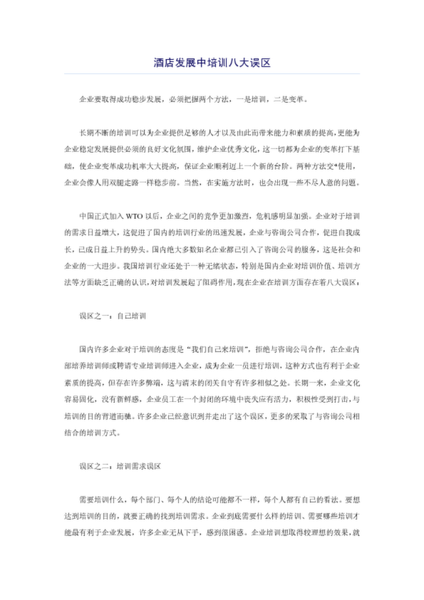 酒店發展中培訓八大誤區(25.00KB)