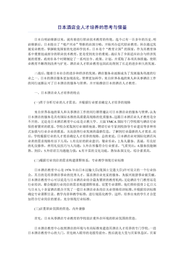 日本酒店業人才培養的思考與借鑒(23.00KB)