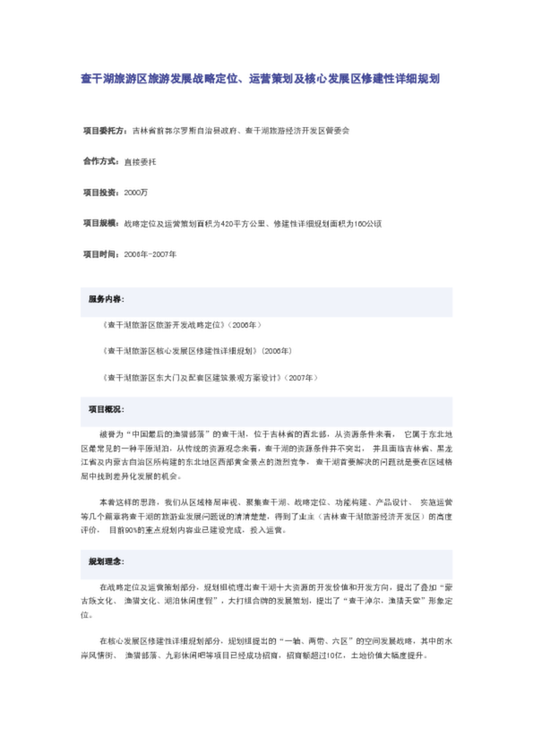 查干湖旅游區旅游發展戰略定位、運營策劃及核心發展區修建性詳細規劃(0.29MB)