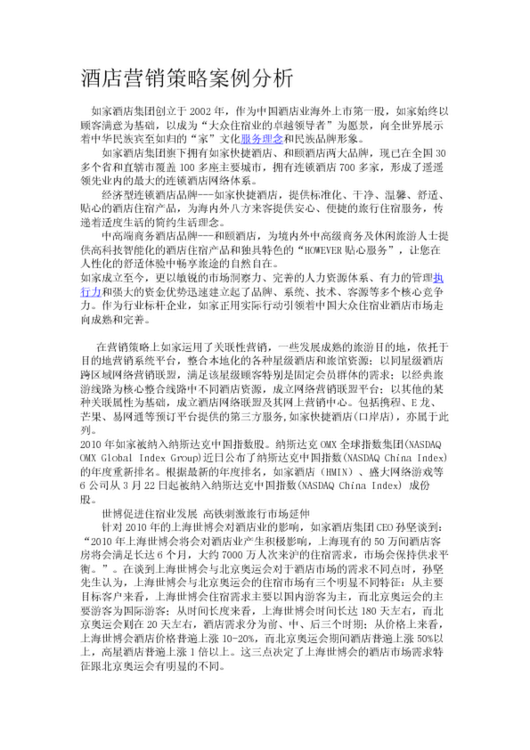 酒店營銷策略案例分析(6.36KB)