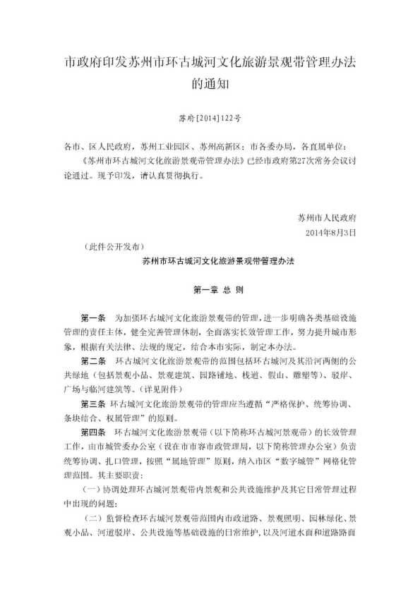 市政府印發蘇州市環古城河文化旅游景觀帶管理辦法的通知 (28.50KB)