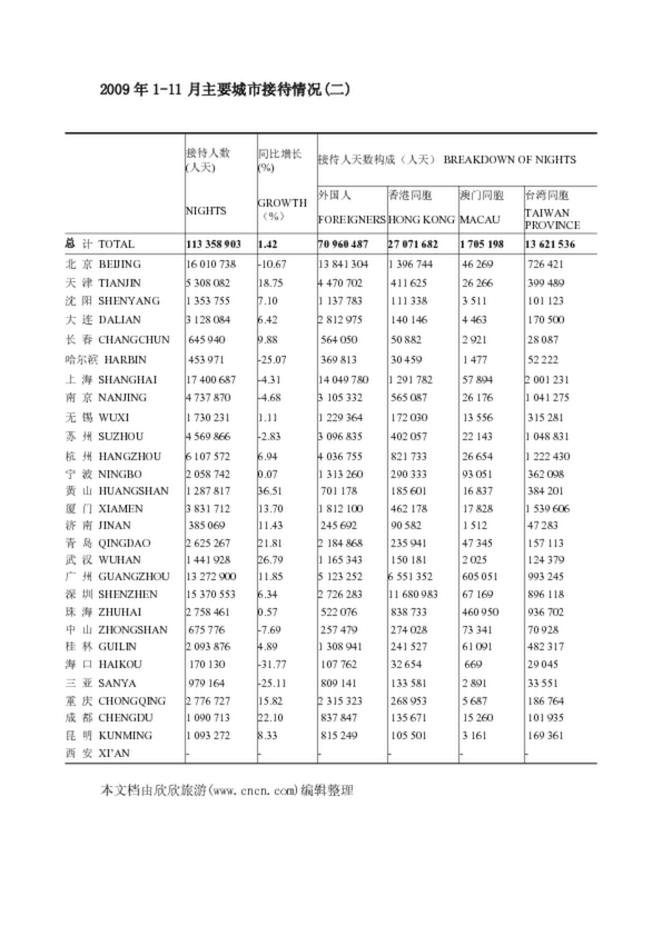 2009年1-11月主要城市接待情況(二)(81.58KB)