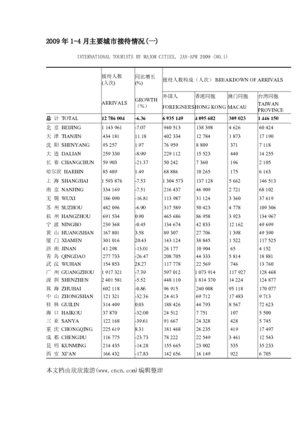 2009年1-4月主要城市接待情況(一)(83.86KB)