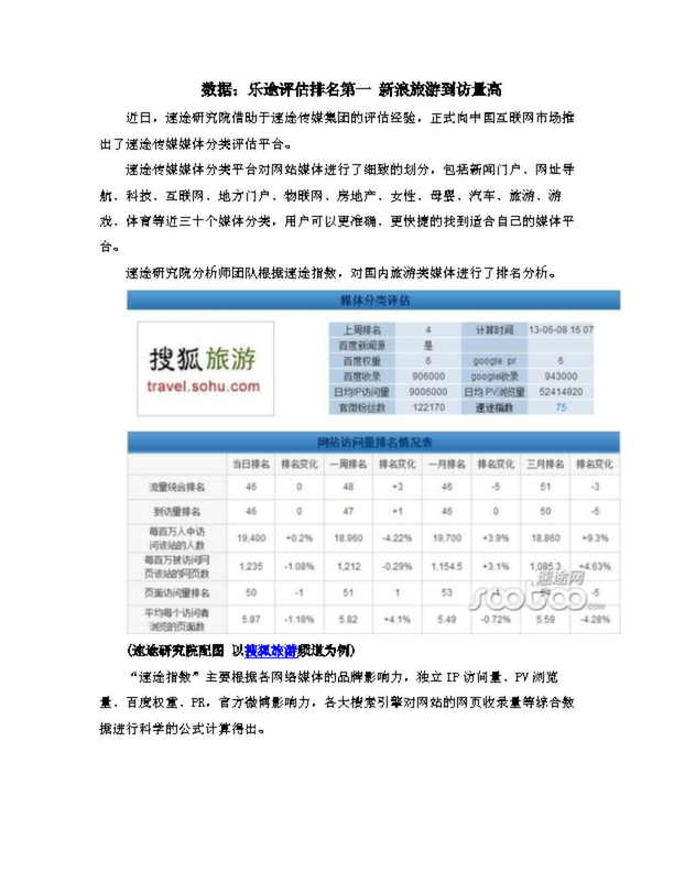 數據:樂途評估排名第一 新浪旅游到訪量高(0.58MB)
