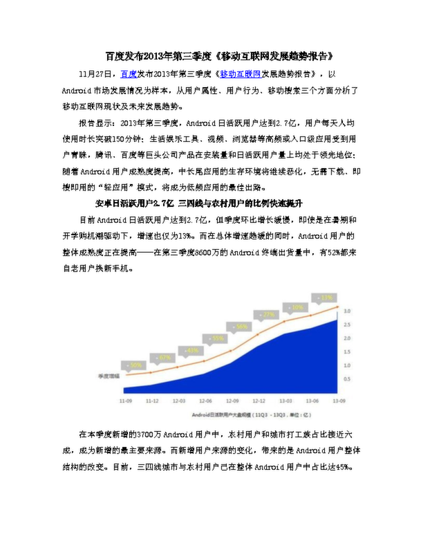 百度發布2013年第三季度《移動互聯網發展趨勢報告》(0.23MB)