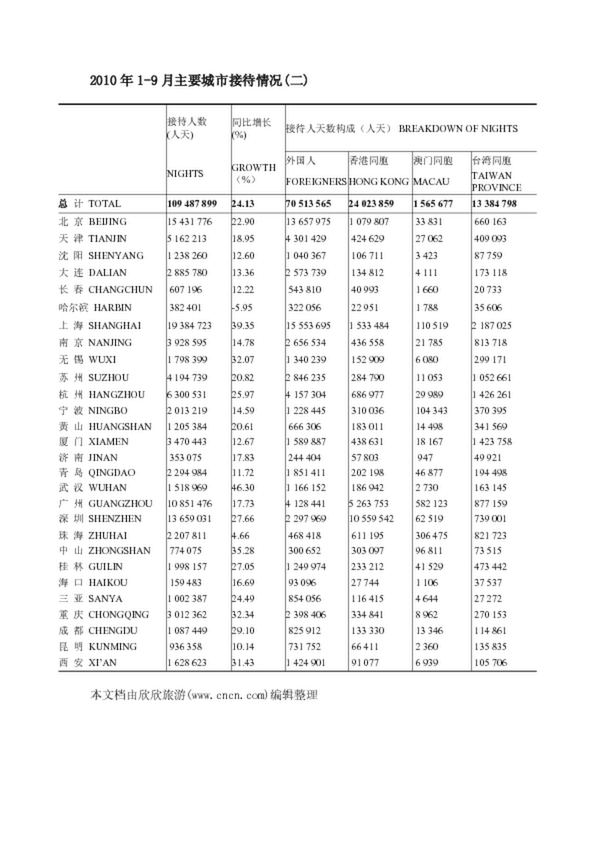 2010年1-9月主要城市接待情況(二)(82.12KB)