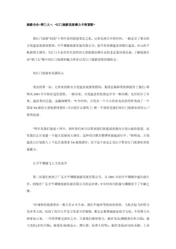 旅游企業“掌門人”:“江門旅游發展潛力不容置疑”(15.50KB)